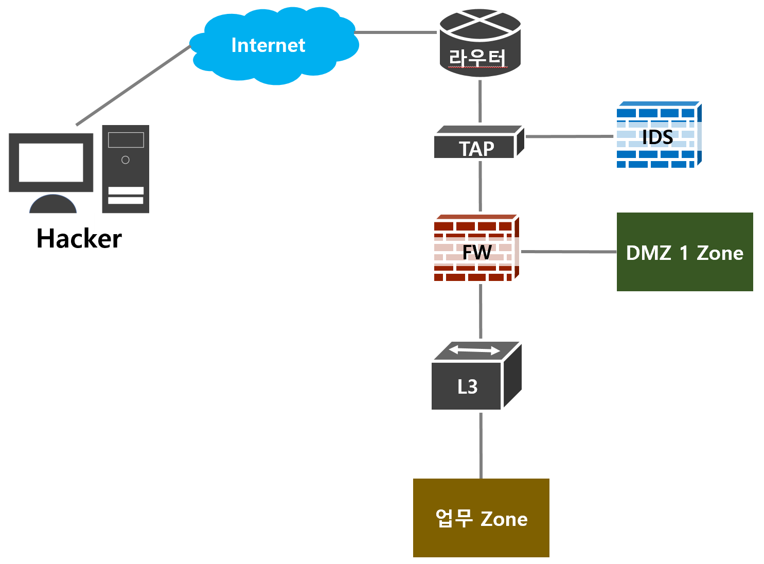 위의 그림처럼 IDS는 일반적으로 미러링 구조 방식으로 구성도에 설계가 된다.